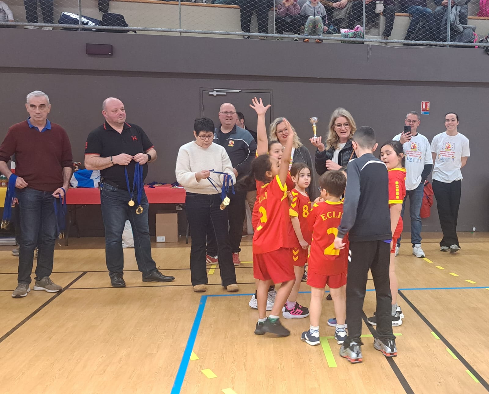 En effet, à l'occasion du tournoi, l'ensemble des bénévoles et des licenciés, coachs et joueurs, se réunissent pour faire vivre l'évènement. Quand les membres du bureau et les parents s'occupent généralement de la vente des boissons, sandwichs, bonbons et autres, les joueurs eux se chargent d'arbitrer les rencontres, de compter les scores et d'accompagner les équipes tout au long de la journée. Tout le monde se réunit et s'organise pour que les enfants puissent profiter au mieux de cette journée qui leur est dédiée.